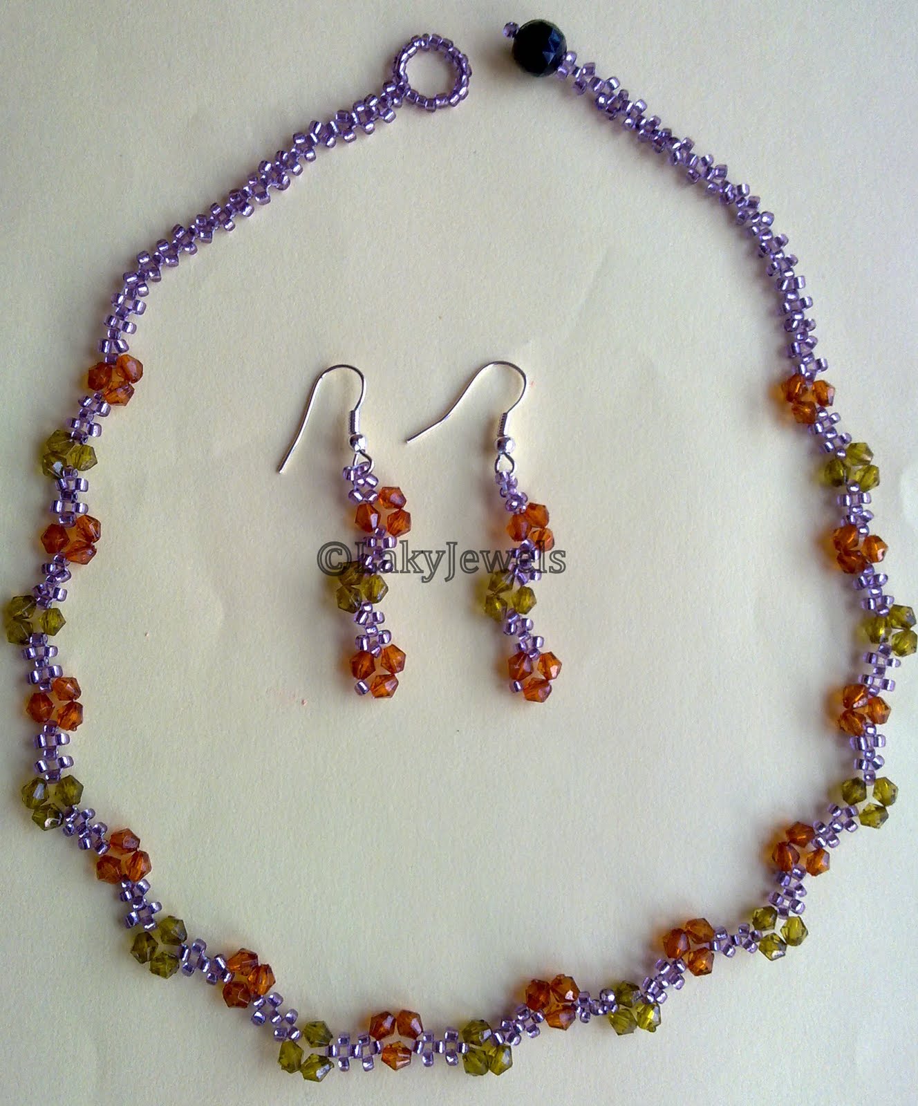 Necklace setsBrown N Green Zig Zag Necklace Setby gpavaniupdated on 17th January 20182nd December 2010Leave a Comment on Brown N Green Zig Zag Necklace Set Brown n Green crystal bicones with Purple silverlined seed beads. Total Necklace Length is 17inchs Total Earrings Length is 11/2 inchs