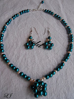 Necklace setsDark Green Pearl and Flower Pendant Beaded Necklace Setby gpavaniupdated on 17th January 201820th February 2011Leave a Comment on Dark Green Pearl and Flower Pendant Beaded Necklace Set Designed with dark green glass pearls that are separated with creamy small glass pearls. The amazing large flower pendant adds texture and drama to this necklace design. Necklace measures 19″ Matching earrings – 1 1/4″ SOLD